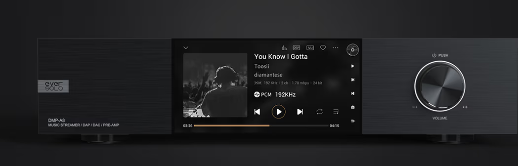 EverSolo DMP-A8 er en top-tier netværksafspiller, der tilbyder den ultimative lytteoplevelse for den kræsne audiofil. Denne enhed kombinerer high-res audio streaming med en kraftfuld DAC og en audiofil pre-amp for at sikre en lydgengivelse af højeste kvalitet. Med understøttelse af 32 bits/768 kHz og DSD512 formater leverer DMP-A8 en detaljerigdom og dybde, der er uovertruffen.